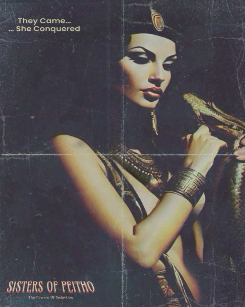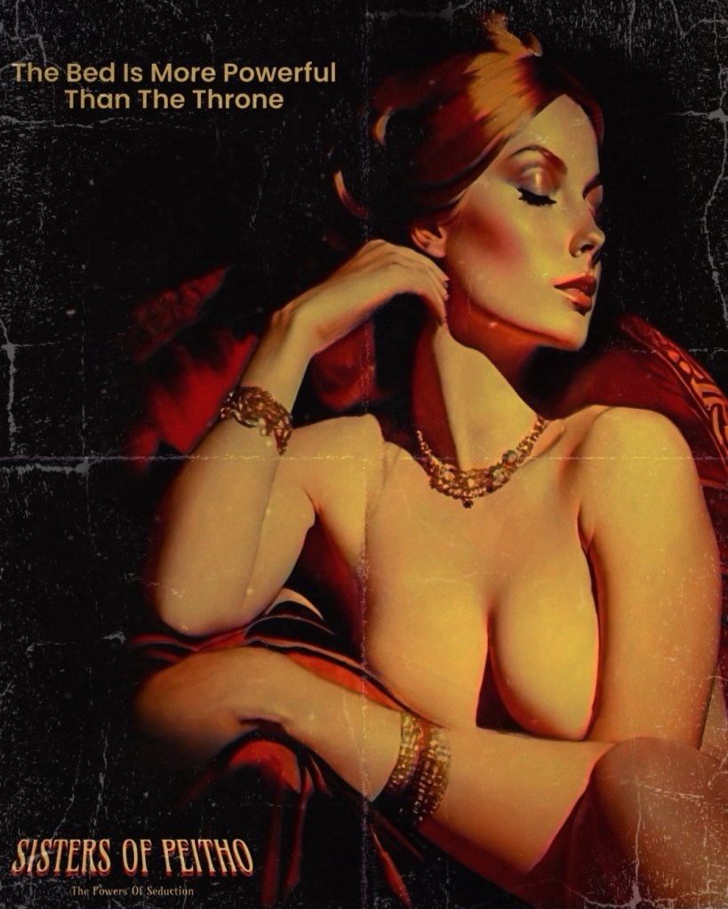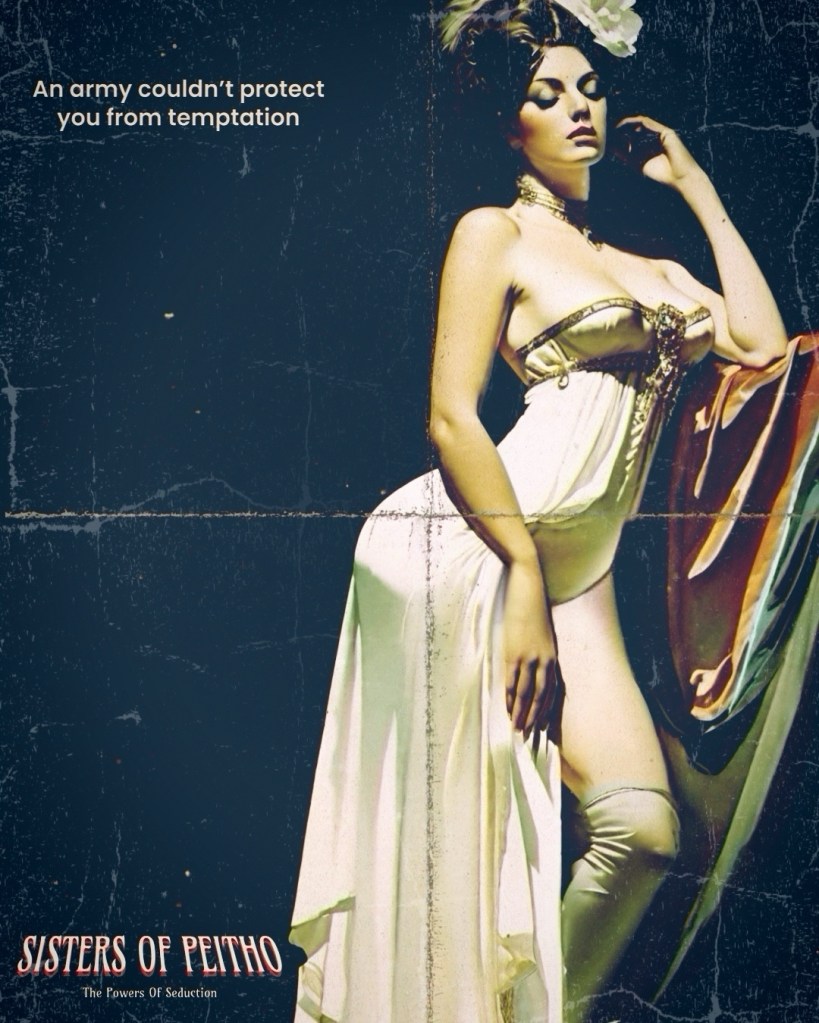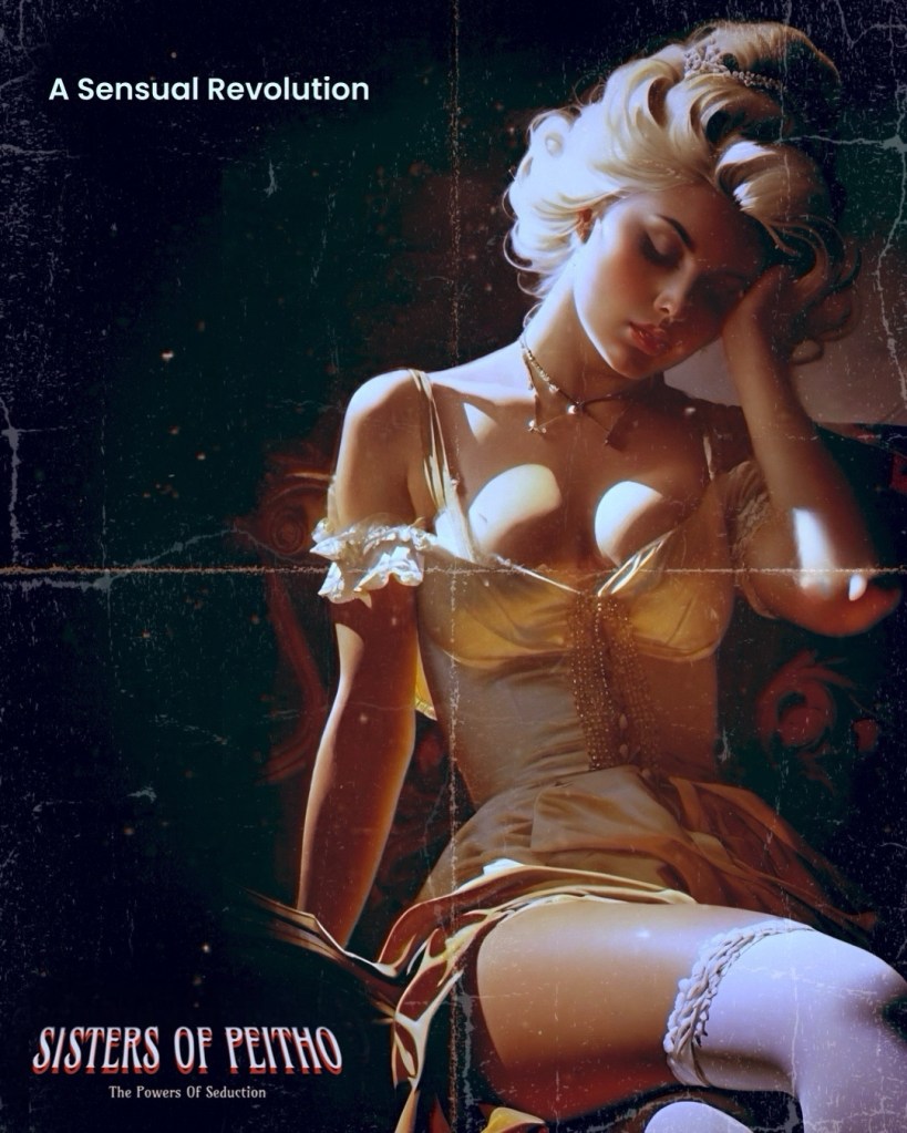 SISTERS OF PEITHO, a 1972 film produced by Peterson Leigh and directed by Pierre Martel-Bouchard, derived from the epic novel by Arthur K. Peckerton, unfolds a narrative centered around Peitho, the Goddess of Persuasion and Seduction. Captured by a group of men wary of her influence, Peitho ingeniously transfers part of her essence into a mortal woman. This vessel, armed with the seductive prowess of Peitho, endeavors to coerce high-ranking members of the cabal into revealing the Goddess’s whereabouts.